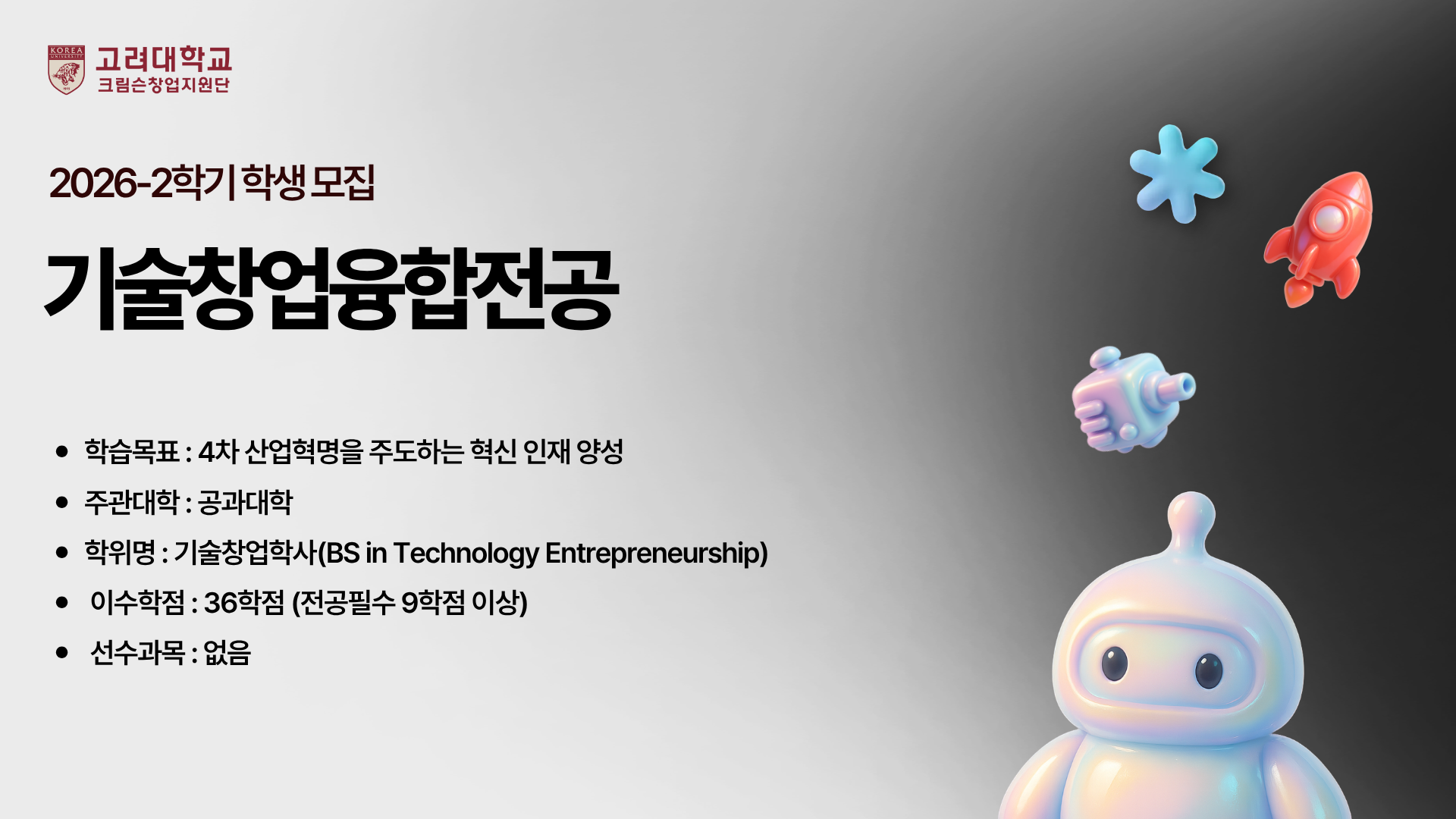 2026학년도 2학기 기술창업융합전공 학생 모집