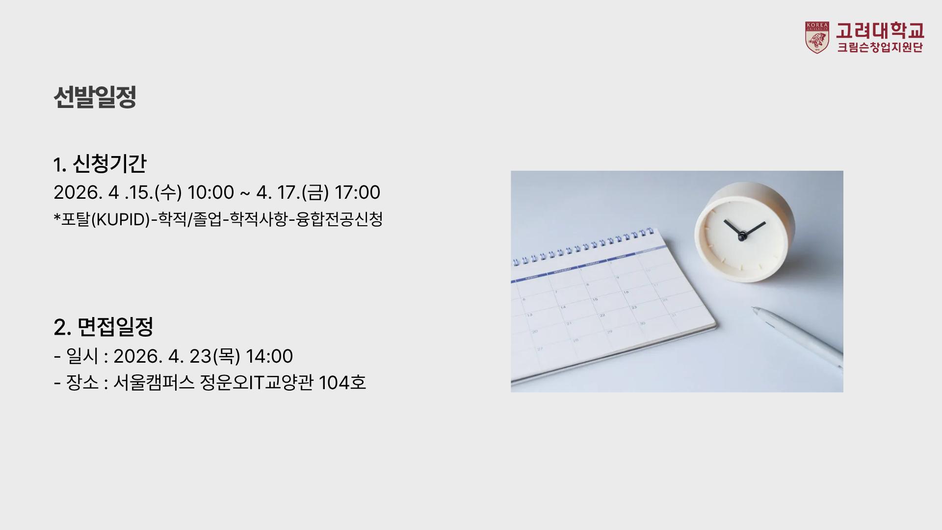 ✅융합전공 신청 : 2026. 4 .15.(수) 10:00 ~ 4. 17.(금) 17:00